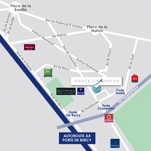 Novotel Paris Charenton 3-5 place des Marseillais 94227 Charenton-Le-Pont Tel : 33(0) 1 46 76 60 60 |